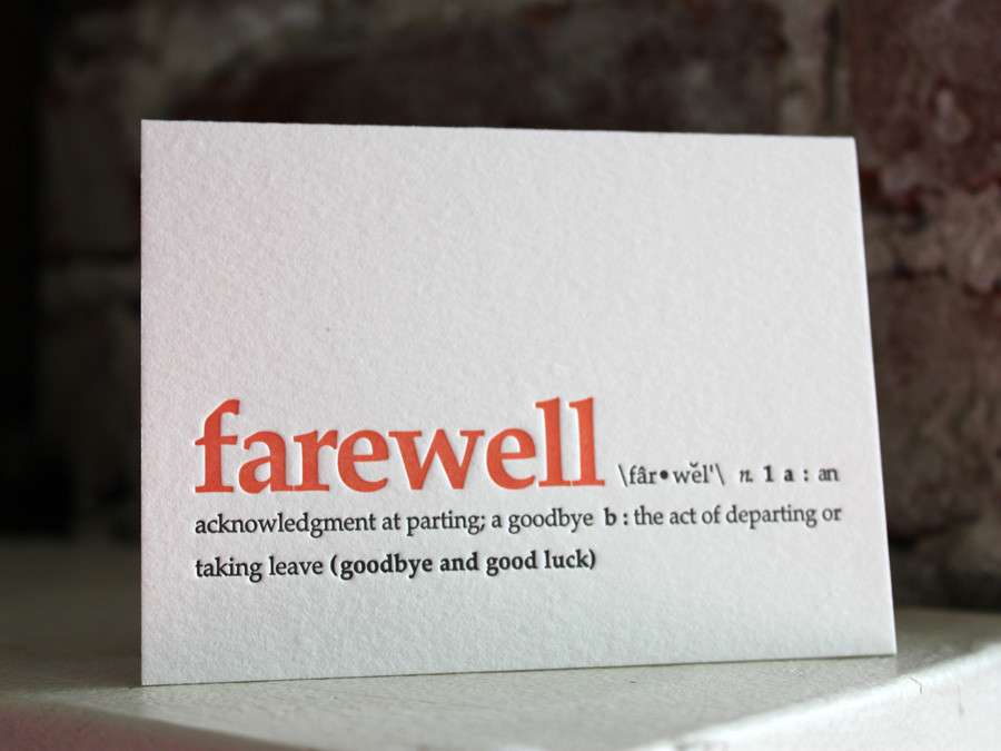 For today’s poem, write a farewell poem. It can be addressed to anyone or anything – autumn, an old flame, a totaled car, or a fear of flying, just to name a few.