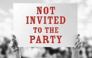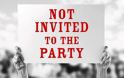 Even worse you can look at the prompt as having been invited and then being uninvited. Write about what that feels like (does a 2-by-4 come to mind?).
